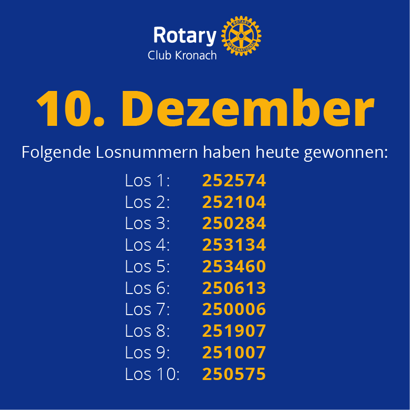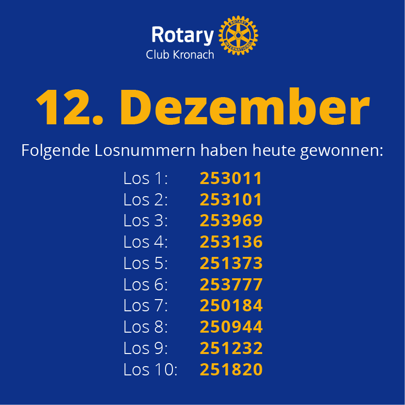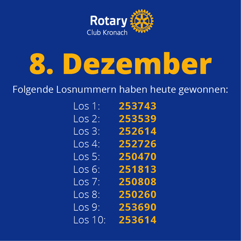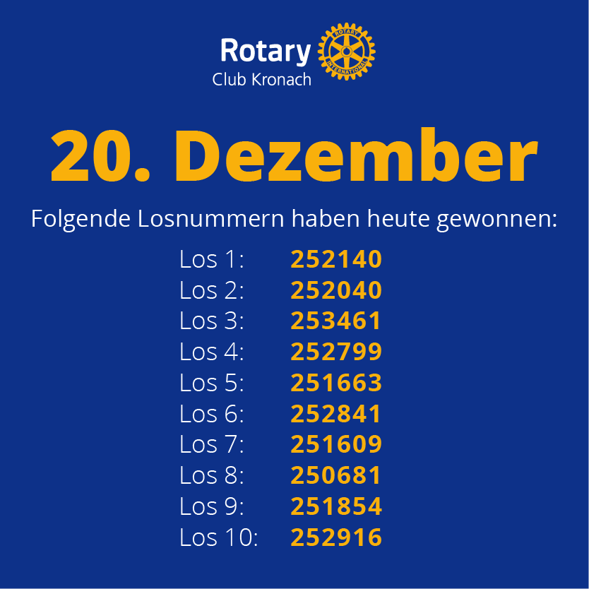 Ihr Adventskalender-Los hat eine einmalige Losnummer. Mit dieser Losnummer nehmen Sie an der täglichen Ziehung der Preise, Gutscheine und Waren von Sponsoren aus Kronach und dem Umland teil – 24 Tage lang oder bis Sie gewonnen haben. Jede Los-Nummer kann nur einmal gewinnen.